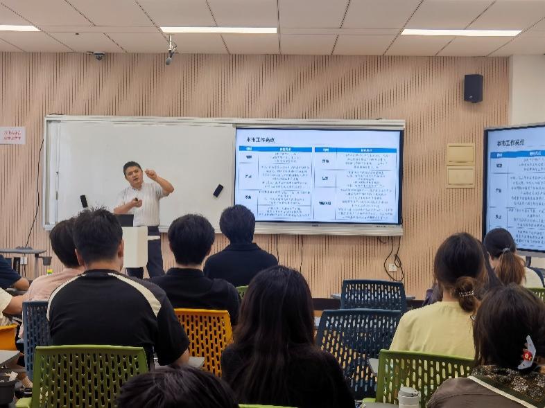 段老师围绕“减污降碳协同增效”主题,从政策、实践、案例、前沿与展望五大维度展开系统讲解,为在座师生构建起一个从理论到实践的完整认知体系。他从宏观政策切入,深入阐释国家推动减污降碳协同增效的战略意义,并对国家与上海市层面的政策导向进行细致解读,帮助员工夯实理论根基,把握政策脉络。他通过详实的数据与生动的场景,展示了上海在能源、工业、交通、建筑等重点领域如何实现污染物减排与碳排放控制的有机结合,生动诠释了“协同治理”的实际成效,使员工对环境规划与管理的系统方法有了直观认知。