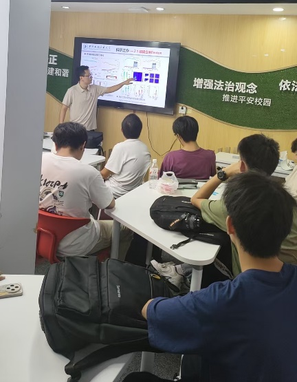 李隽老师针对大一新生,从考研学习、生活、身心健康、技能提升等多个维度,详细阐述了大学四年的规划重点。他结合各阶段的特点,为同学们提供了切实可行的规划建议,帮助大家明确目标,合理分配时间与精力,为未来的学术与职业发展奠定坚实基础。随后,班会进入科研学术分享环节。李隽老师聚焦近期国庆期间“诺奖”颁布的热点事件,特别分享了诺贝尔奖得主的励志故事。李老师借此勉励大家要立足当下,保持对知识的渴望与好奇心,以学校为起点,勇敢攀登学术高峰,努力追求自己的学术梦想。此外,李隽老师还介绍了自己团队的学术研究工作,旨在激发员工对科研的兴趣,为他们的学术探索之路播撒希望的种子。他热情欢迎同学们积极参与科研活动,与团队成员一起交流探讨科学问题,共同成长进步。