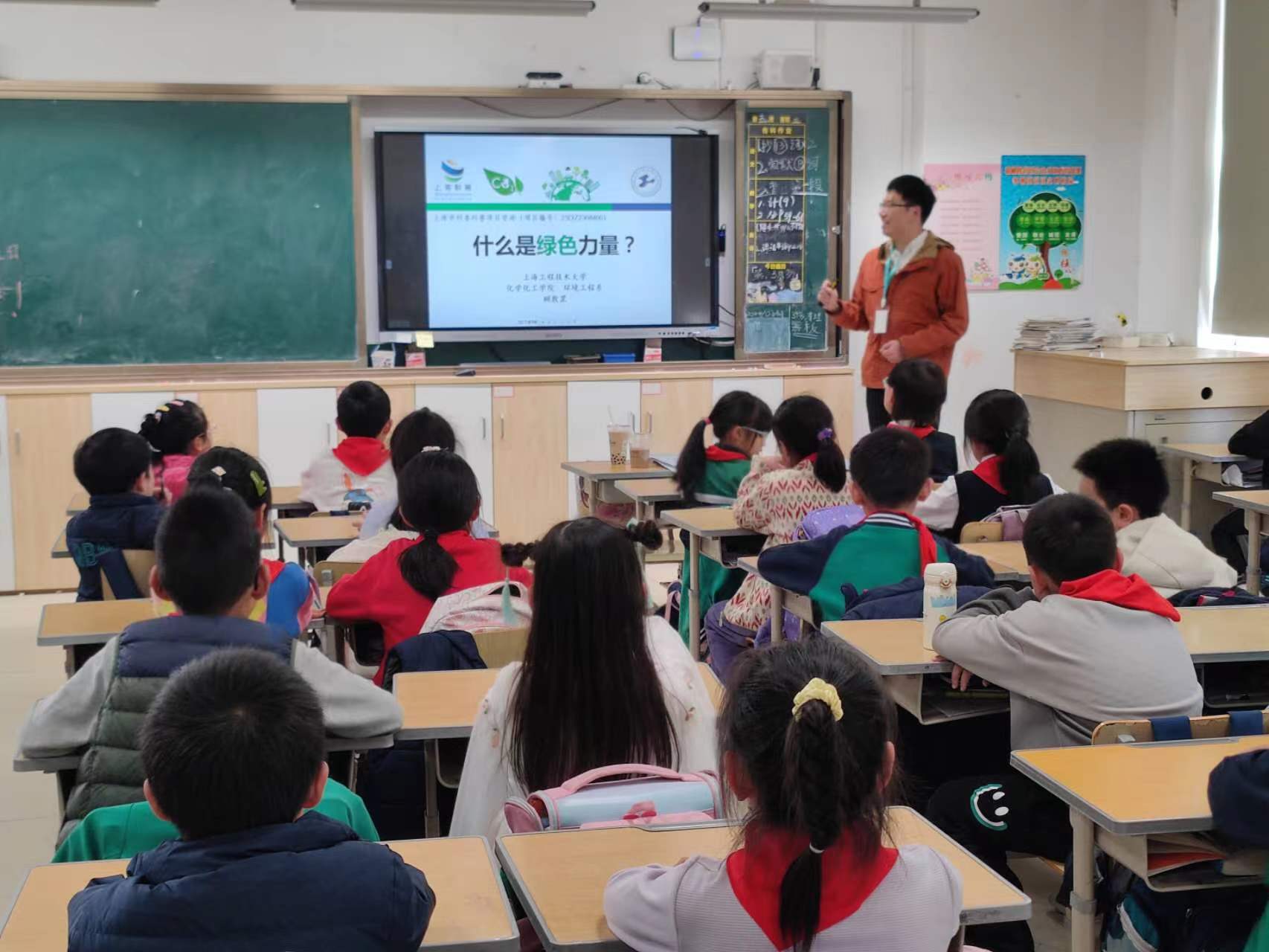 On the afternoon of March 29th, the Dual Carbon and Environmental Protection science popularization series of the School of Chemistry and Chemical Engineering visited Qibao Mingqiang Primary School in Minhang District and held an activity class in the third grade of the school.