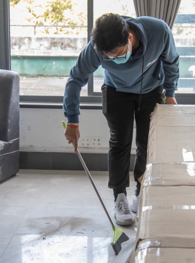 After the volunteers came to the fourth floor of the training building, the teacher assigned work to everyone. The volunteers picked up various tools such as brooms, rags, mops, etc., and started the cleaning work. Every volunteer is not afraid of getting dirty or tired, and completes their respective tasks earnestly and actively. Everyone worked together and finally completed the cleaning work smoothly and satisfactorily.