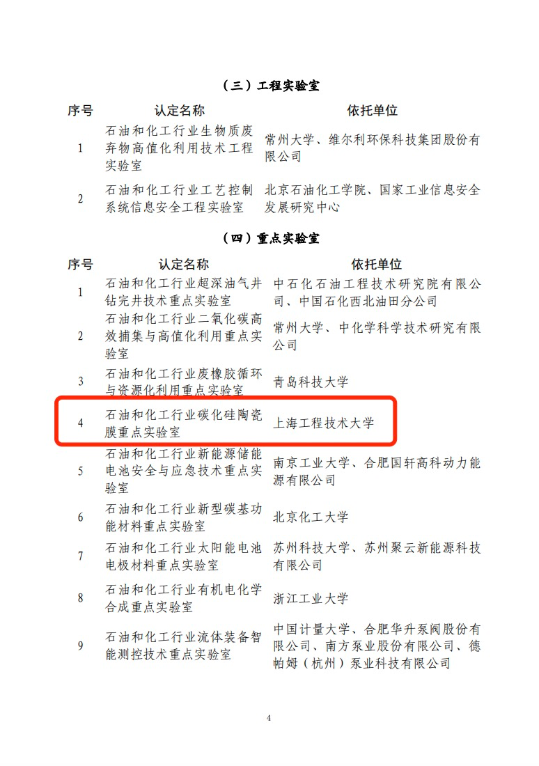 Recently, it was learned from the Decision of the China Petroleum and Chemical Industry Federation on Identifying the Innovation Platform for the Petroleum and Chemical Industry in 2022 (Sinopec Liankefa (2022) No. 222) that the Key Laboratory of Silicon Carbide Ceramic Film in the Petroleum and Chemical Industry, which was declared by the Environmental and Resource Innovation Center of our school, was officially approved, marking a major breakthrough in the construction of the innovation platform in the petroleum and chemical industry, In the field of high-performance ceramic membrane technology, it is in the leading position in the industry.